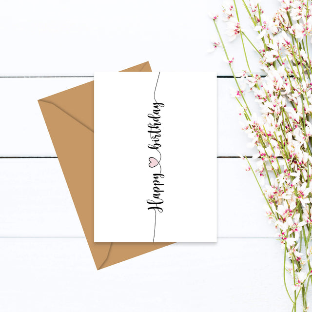 Ein Geburtstag ohne eine liebevolle Karte? Unvorstellbar! Diese handgezeichnete "Happy Birthday" Klappkarte ist perfekt, um Glückwünsche stilvoll zu überbringen. Ob humorvoll, herzlich oder klassisch – auf der blanko Innenseite hast du genügend Platz für deine ganz persönlichen Worte.