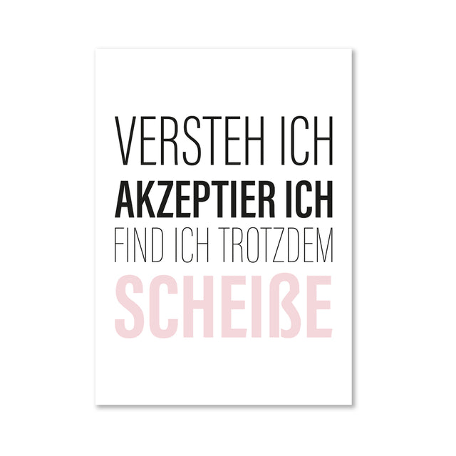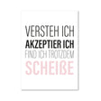 Hast du auch manchmal das Gefühl, dass du Dinge verstehst, aber trotzdem nicht damit einverstanden bist? Dann ist dieser Magnet mit dem Spruch "Versteh ich, akzeptier ich, find ich trotzdem scheiße" genau das Richtige für dich!