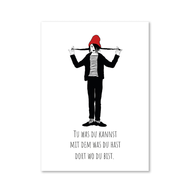 Du suchst nach einem täglichen Motivations-Boost? Dann ist dieser Magnet mit dem Spruch "Tu was du kannst, mit dem was du hast, dort wo du bist" genau das Richtige für dich! Der Magnet hat eine Größe von 5,6 x 7,8 cm und besteht aus einem Magnetträger mit 900µ, der mit einer bedruckten PVC-Folie kaschiert ist. Die Künstlerin Ulrike Wathling hat ihn mit viel Liebe zum Detail gestaltet und gezeichnet, so dass er nicht nur praktisch, sondern auch ein echter Hingucker ist. Du kannst ihn entweder selbst behalten oder als Geschenk an Familie, Freunde, Kollegen oder Bekannte weitergeben. Der Magnet eignet sich perfekt als Alltagshelfer für das Büro oder als Dekoration für eine Magnetwand zuhause. Wenn du jetzt bestellst, kannst du dich auf eine schnelle Lieferung freuen. Der Magnet ist "Made in Germany" und überzeugt durch einen hochwertigen Druck. Bestelle jetzt und lasse dich von diesem Spruch motivieren, jeden Tag das Beste aus dir herauszuholen!