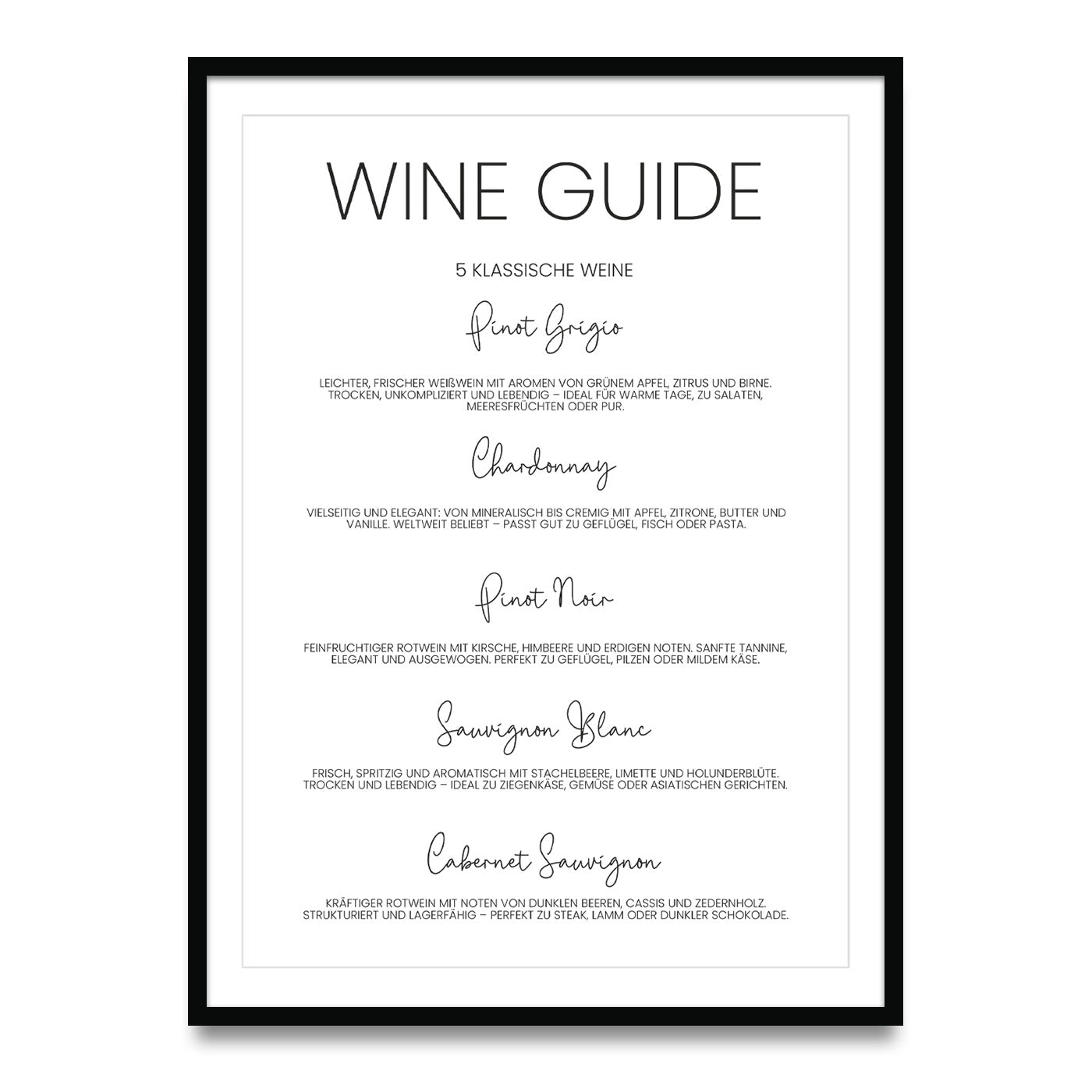 Mit dem Weinguide-Poster bringst du eine dekorative und zugleich praktische Note in deine Einrichtung.