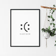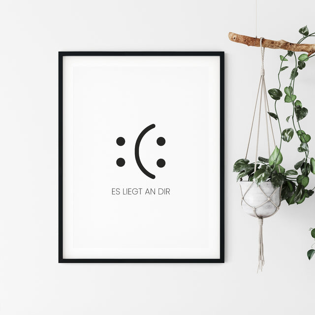Mit diesem Poster „Es liegt an dir“ bringst du eine klare Botschaft an deine Wand: Jeden Tag entscheidest du selbst, ob du mit einem Lächeln oder mit Trübsinn durch den Tag gehst. Die beiden gezeichneten Smileys – ein lachendes und ein trauriges Gesicht – machen die Botschaft spielerisch und gleichzeitig kraftvoll deutlich.