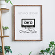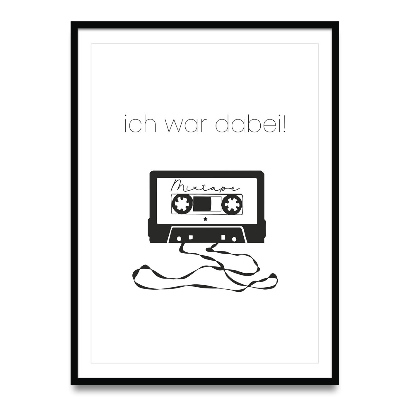 Poster mit einer gezeichneten Kassette und dem Spruch "Ich war dabei" in der Größe Din A4. (Ohne Rahmen). Dieses Kunst Poster erinnert an die Zeiten, als man mit einem Mixtape die beste Freundin oder einen neuen Schwarm beeindrucken konnte. Es kostete oft Stunden, denn nicht nur die Musikauswahl sollte optimal aufeinander abgestimmt sein, sondern auch die Liederübergänge mussten passen. Handbeschrieben und schön gestaltet, wurden Kassetten zu kleinen Kunstwerken und wurden gehütet wie kleine Schätze. Gern verfing sich beim Abspielen das Band im Kassettenrekorder und das Chaos war perfekt. Mit großer Sorge versuchte man den Bandsalat zu entwirren und hoffte, dass die Kassette dadurch keinen Schaden genommen hatte. Mithilfe eines Bleistiftes gelang es schließlich, das Band wieder aufzuwickeln. Doch manchmal riss das Band und der Ärger war perfekt. Dann half nur noch ein Stück Tesafilm, um das gerissene Band zu kleben. In ganz schlimmen Fällen, musste auch mal eine Kassette aufgeschraubt werden, um den Schaden zu beseitigen. Doch der ganze Aufwand lohnte sich nicht, wenn das Band zerknickt wurde, denn dann fing das Lieblingslied beim Abspielen an zu eiern und die Musikqualität war dahin. Für alle Nostalgiker oder Musikfans ist dieses Poster mit der handgezeichneten Kassette die perfekte Wahl. Mit oder ohne Rahmen sorgt es garantiert für einen Hingucker in deinen vier Wänden und verbreitet gute Laune.